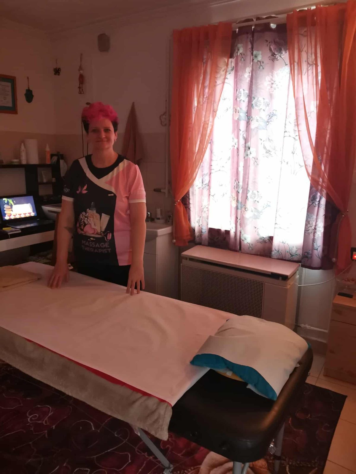 Jelenleg Frissítő Svéd masszőrként dolgozom. Vannak különböző időintervallumú kezeléseim: 30 perces.-hát 60 perces. 90 perces-teljes test. Általános Arc masszázs választható még nálam-Dr Riedl fiatalító arcmasszázs olajjal. Választható még általános Talpmasszázs, melyet lábpezsgőfürdővel egészítek ki. A jövőbeli terveim közé tartozik bevezetni, gyakorolni a lávaköves masszázst, kozmetikai nyirokmasszázst és az indiai arc és fejmasszázst. Nyitvatartás: Bejelentkezés alapján